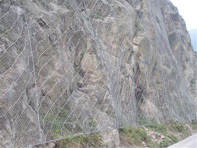 SNS邊坡防護網(wǎng)系統(tǒng)的常用規(guī)格:[鋼柱(間距10M),帶消能環(huán)的∮16雙支撐繩和∮16"人"字形上拉錨繩(每跨6個消能環(huán)),∮16側(cè)拉錨繩(單繩),◇/08/200/4*5㎡鋼絲繩網(wǎng),縫合繩,格柵網(wǎng)。 材質(zhì):鋼絲繩網(wǎng)、普通鋼絲格柵(常稱鐵絲格柵)和TECCO高強度鋼絲格柵 。構(gòu)造:前兩者通過鋼絲繩錨桿和/或支撐繩固定方式,后者通過鋼筋(可施加預應力)和/或鋼絲繩錨桿(有邊沿支撐繩時采用)、專用錨墊板以及必要時的邊沿支撐繩等固定方式 。產(chǎn)品特性:SNS邊坡防護網(wǎng)作用原理上類似于噴錨和土釘墻等面層護坡體系,但因其柔性特征能使系統(tǒng)將局部集中荷載向四周均材質(zhì):鋼絲繩網(wǎng)、普通鋼絲格柵(常稱鐵絲格柵)和TECCO高強度鋼絲格柵 勻傳遞以充分發(fā)揮整個系統(tǒng)的防護能力,即局部受載,整體作用,從而使系統(tǒng)能承受較大的荷載并降低單根錨桿的錨固力要求 。被動防護系統(tǒng):材質(zhì):鋼絲繩網(wǎng)、支撐繩和減壓環(huán),構(gòu)造:由鋼絲繩網(wǎng)或環(huán)形網(wǎng)(需攔截小塊落石時附加一層鐵絲格柵)、固定系統(tǒng)(錨桿、攔錨繩、基座和支撐繩)、減壓環(huán)和鋼柱四個主要部分構(gòu)成。