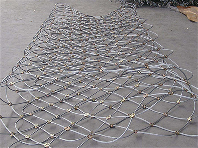 鋼絲繩網(wǎng)的用途:采用鋼絲繩錨桿或鋼筋錨桿和支撐繩固定方法將金屬柔性網(wǎng)覆蓋在具有潛在地質(zhì)災(zāi)害的坡面上,從而實(shí)現(xiàn)坡面加固或限制落石運(yùn)動(dòng)范圍的一種防護(hù)網(wǎng)。